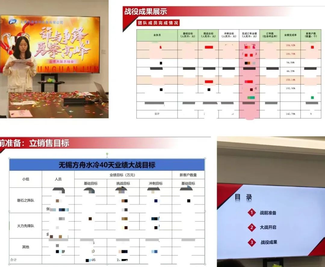 40天業績大戰完美收官||方舟水冷熱血榮耀時刻![]() 40天業績大戰終落幕,無錫方舟水冷設備有限公司“業績大戰”總結表彰會熱血開場! ![]() 會議開始,主持人登臺致辭,PPT屏幕回顧40天里團隊從目標確立到全力沖刺的每一個高光瞬間,跳動的業績數據格外亮眼:總業績超額完成142.76%、簽單數、新客戶數均有顯著增長!一張張圖表見證著方舟人的汗水與突破。 ![]() 最激動人心的頒獎環節如期而至!“百萬英雄”“團隊**”“****”等獎項依次頒發,銷售精英們陸續登臺,接過沉甸甸的榮譽證書與豐厚獎品——從實物獎勵到現金獎勵,每一份嘉獎都承載著對拼搏者的肯定。 ![]() ![]() 緊接著,備受期待的“買馬機制”兌現環節掀起小高潮,前期參與業績競猜的員工憑精準預判贏取了額外獎金,現場歡呼聲此起彼伏。 ![]() 分享環節中,總經理朱總親自上臺分享“買馬”小故事:買馬活動中同事為新人同事“加碼”,堅信團隊潛力的他最終如愿拿到獎勵,不是賭運氣,是信伙伴,信公司,溫暖了在場所有人。 ![]() 最后,老板上臺總結,40天里,我們看到了不服輸的韌勁,更看到了方舟人抱團向前的底氣。業績是結果,但并肩作戰的情誼、突破自我的勇氣,才是我們最珍貴的戰利品! ![]() 會議在全員大合照中圓滿落幕,鏡頭定格下一張張帶著笑容的臉龐。短暫休整后,方舟水冷的下一場征程已蓄勢待發,熱血不止,奮斗不息! ![]() 歡迎關注無錫方舟水冷微信公眾號